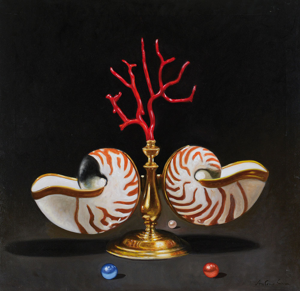 olio su tela cm. 80x80x2, firma in basso a destra e al retro, dichiarazione d'autenticità dell'artista su foto, fotografia allegata ritraente l'artista con l'opera, priva di cornice.