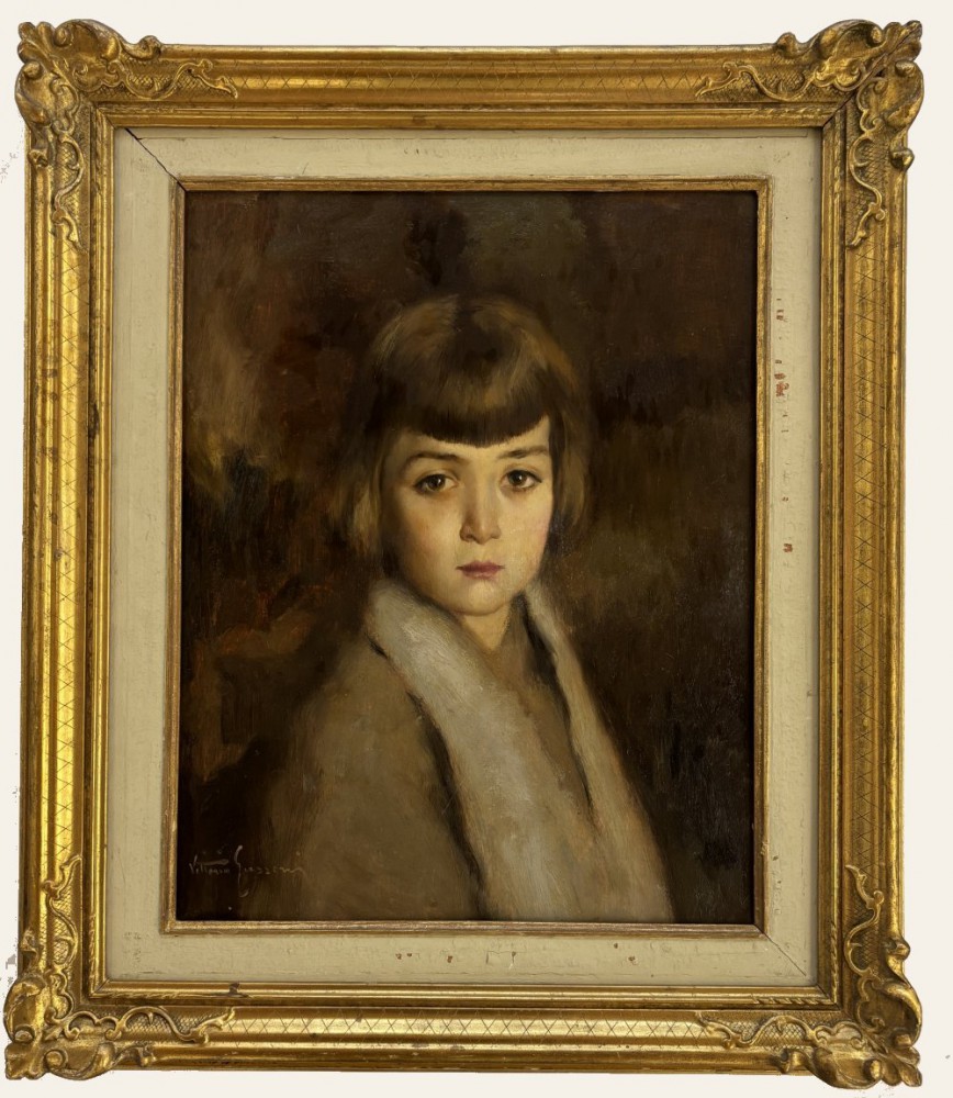 Vittorio Gussoni Milano 1893 - 1968 Sanremo Ritratto femminile Olio su tavola cm 50x40 firmato in basso a sx