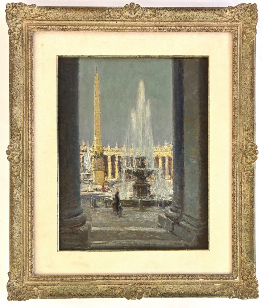 Lidio Ajmone Coggiola (BI) 1884 - 1945 Andezeno (TO) Piazza san Pietro a Roma Olio su tavola cm 44,5x35 firmato al retro