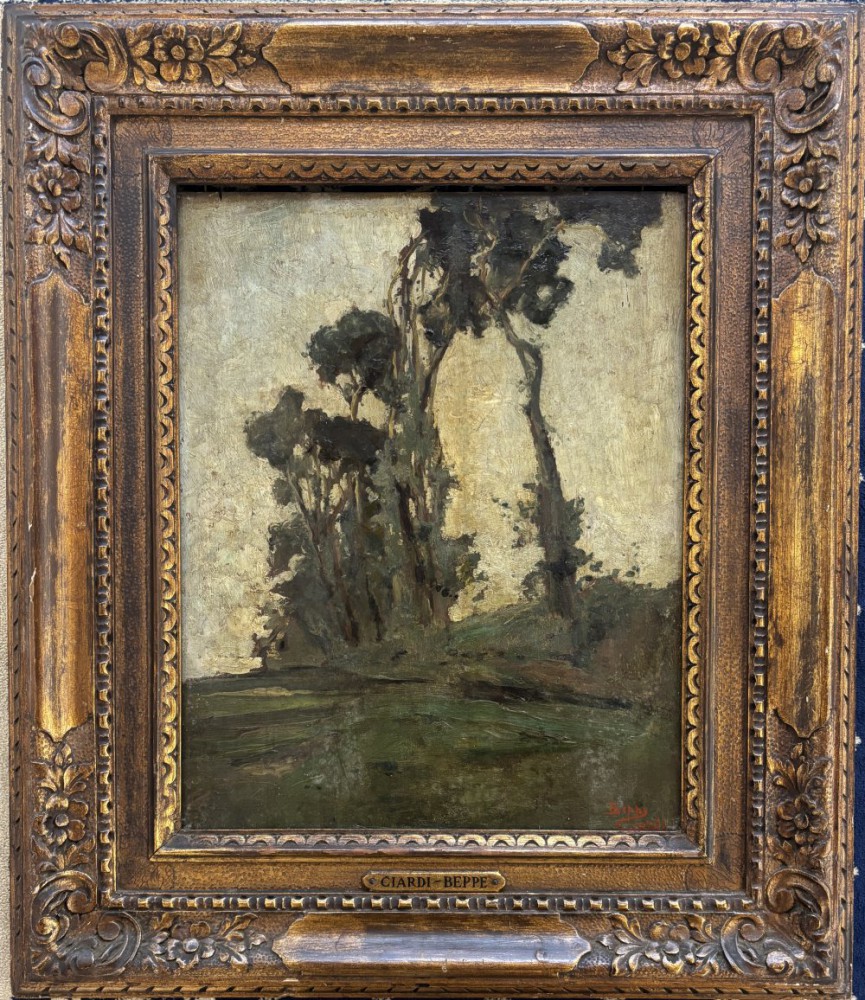 Beppe Ciardi Venezia 1875 - 1923 Quinto di Treviso Paesaggio con alberi Olio su tavola cm 42x32 firmato in basso a dx
