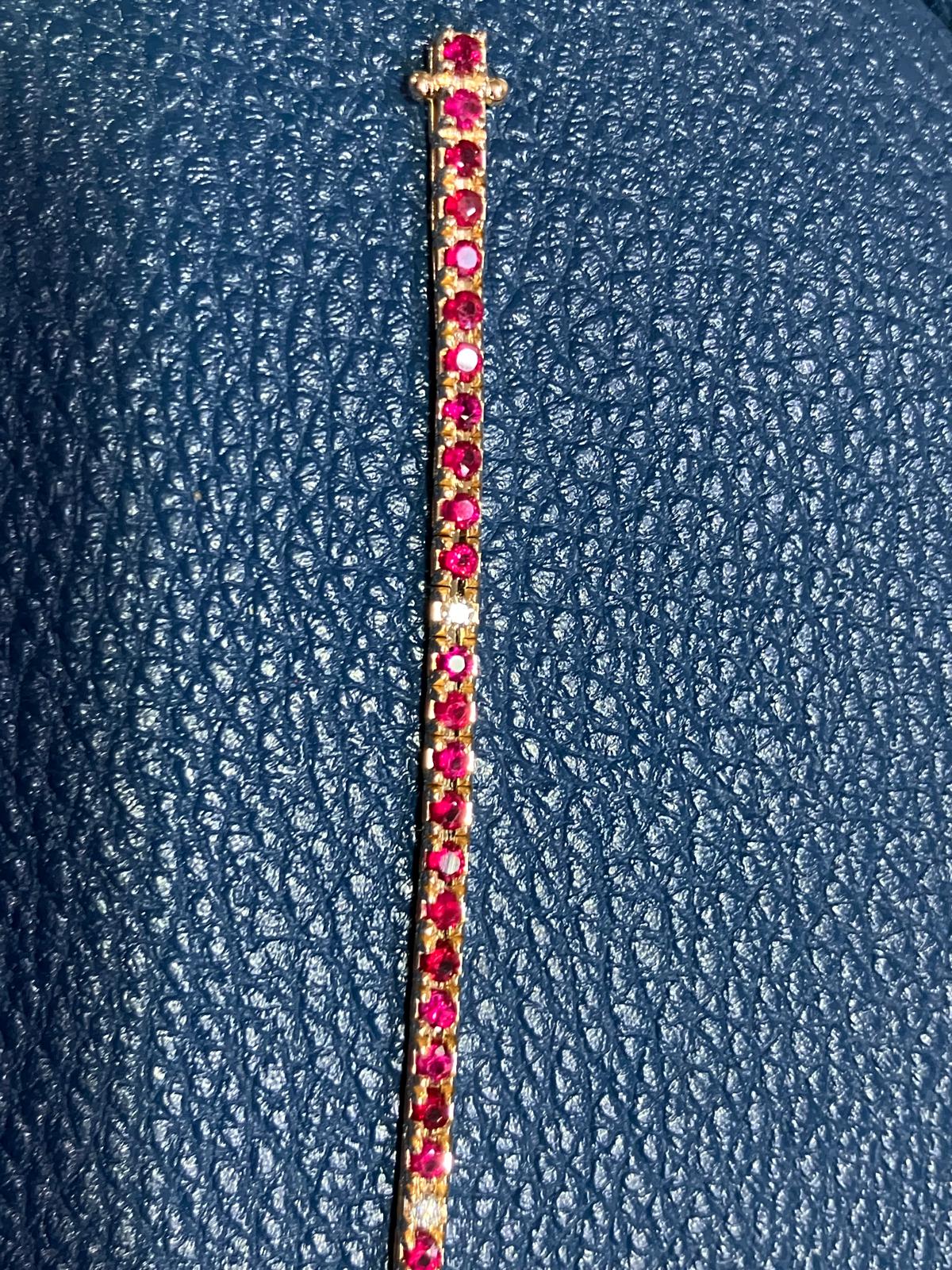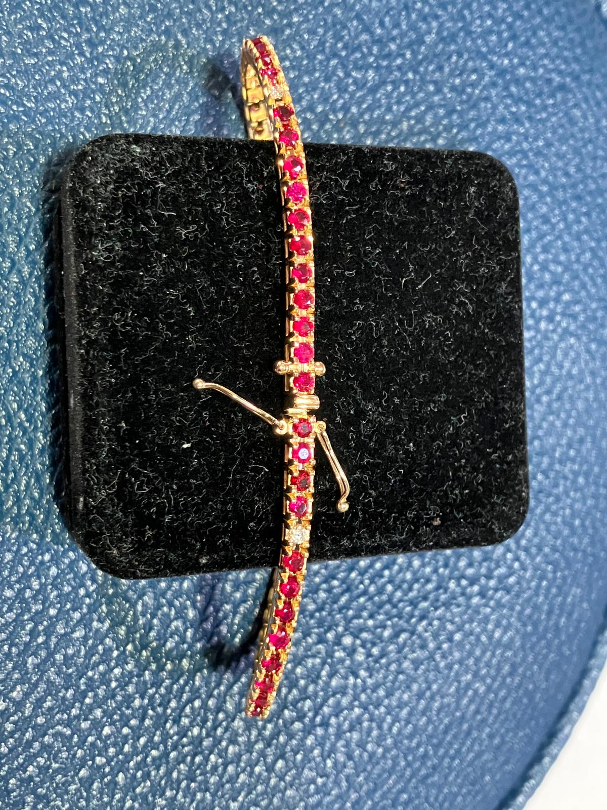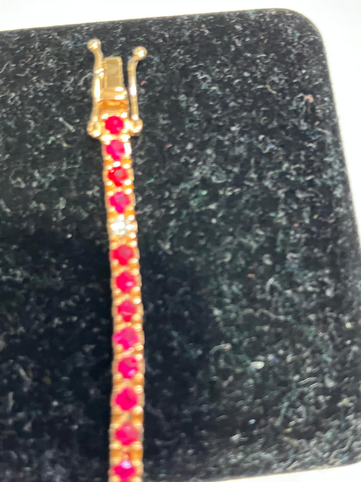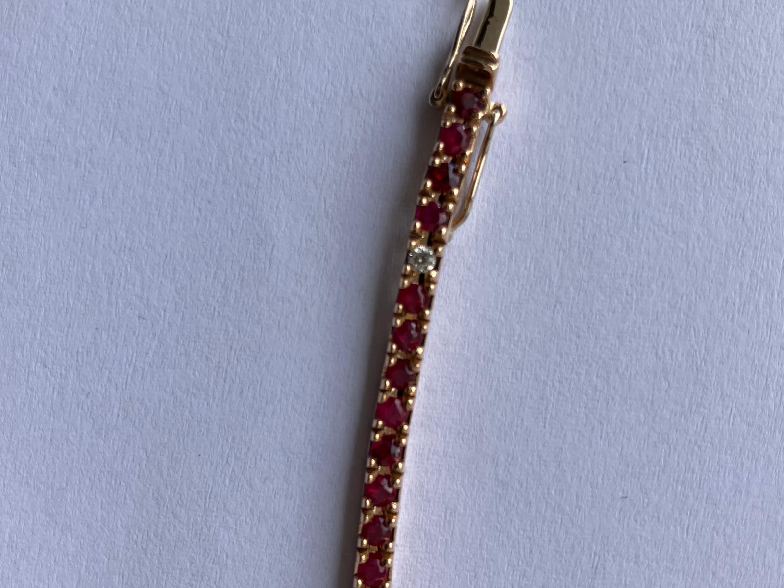 Bracciale tennis in oro rosa del peso di gr 9 , 95 interamente percorso da rubini burman miniera Mogok per totali carati 2,90 e pause in brillanti incolore per totali ct 0,20