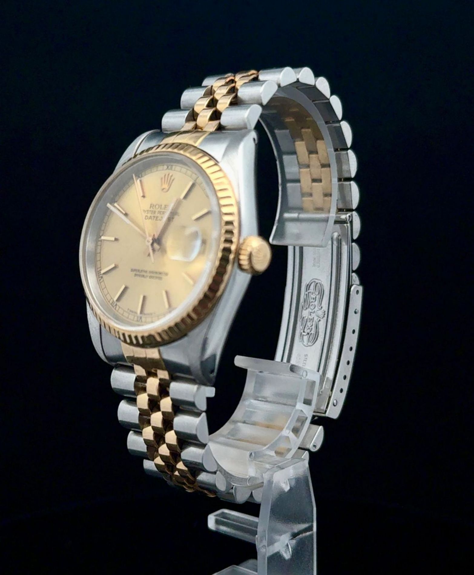Marca Rolex Modello (Orologio) Datejust 36 Numero di referenza 16233 Carica Automatico Materiale della cassa Oro/Acciaio Materiale cinturino Oro/acciaio Anno 1994 Condizione Usato (Ottimo) L'articolo presenta segni di usura lievi, come ad esempio graffi leggeri, ma non percepibili al tatto. Corredo Con documenti originali, no box la scatola utilizzata solo per fotografie non in vendita Diametro 36 mm Impermeabile 10 ATM Materiale lunetta Oro giallo Vetro Vetro zaffiro Cinturino Materiale cinturino Oro/acciaio Colore cinturino Oro/acciaio Chiusura Déployante Materiale chiusura Acciaio Funzioni Data
