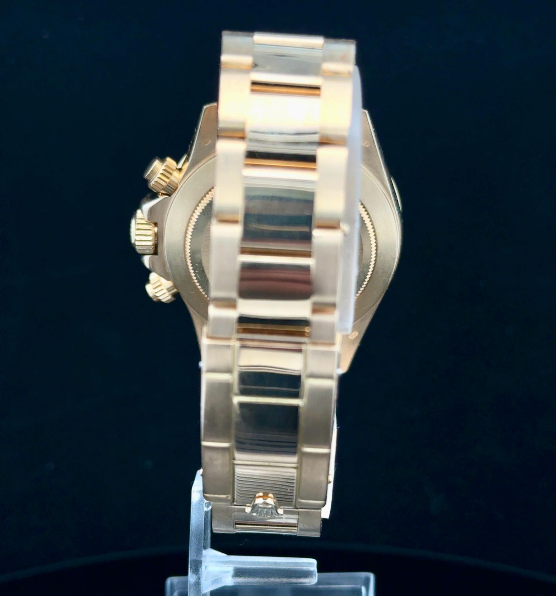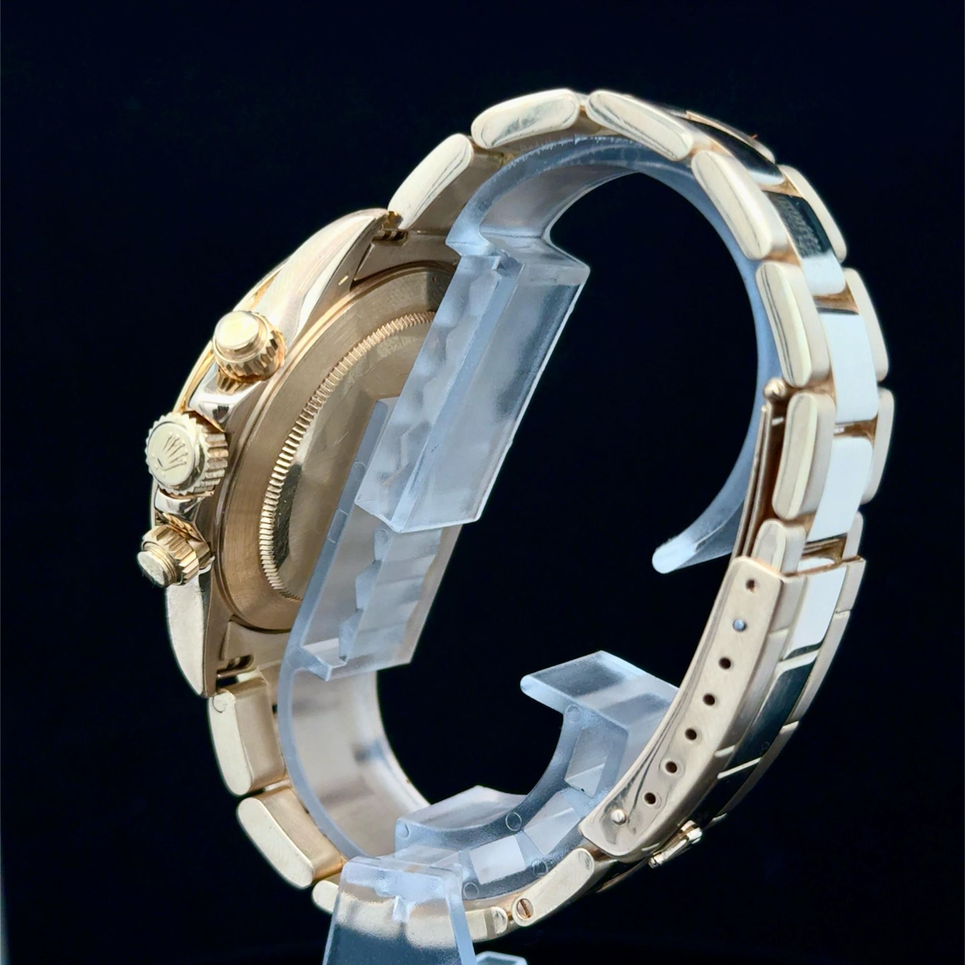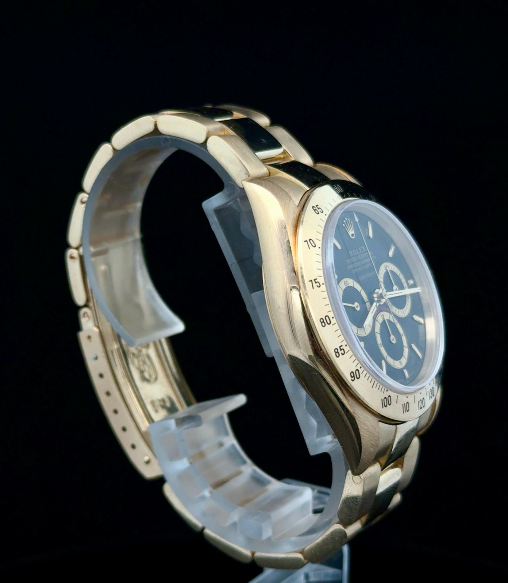 Marca Rolex Modello (Orologio) Daytona floating dial Numero di referenza 16528 Carica Automatico Materiale della cassa Oro giallo Materiale cinturino Oro giallo Anno di produzione 1989 Condizione Usato (Ottimo) Corredo Senza scatola originale né documenti originali Carica Automatico Calibro di base Zenith El Primero Materiale della cassa Oro giallo Diametro 40 mm Impermeabile 10 ATM Materiale lunetta Oro giallo Vetro Vetro zaffiro Quadrante Nero Numeri sul quadrante Senza numeri Cinturino Materiale cinturino Oro giallo Colore cinturino Oro Chiusura Déployante Materiale chiusura Oro giallo Funzioni Cronografo