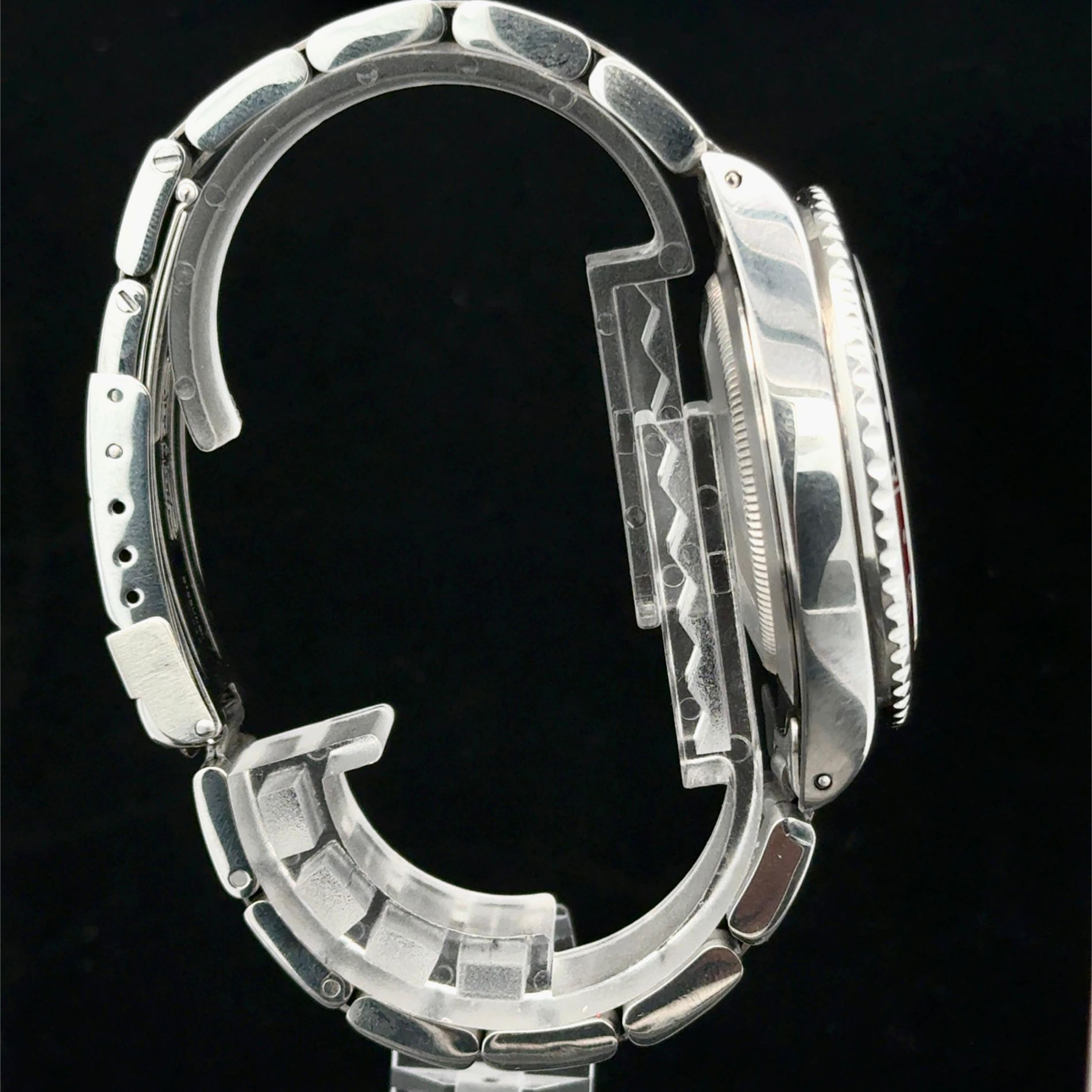 Marca Rolex Modello (Orologio) GMT-Master II Numero di referenza 16710 Carica Automatico Materiale della cassa Acciaio Materiale cinturino Acciaio Condizione Usato L'articolo presenta segni di usura lievi, come ad esempio graffi leggeri, ma non percepibili al tatto. documenti originali Rolex, no box la scatola utilizzata solo per fotografie non in vendita Carica Automatico anni 90 Materiale della cassa Acciaio Diametro 40 mm Impermeabile 10 ATM Materiale lunetta Acciaio Vetro Vetro zaffiro Quadrante Nero Numeri sul quadrante Senza numeri Cinturino Materiale cinturino Acciaio Colore cinturino Acciaio Chiusura Déployante Materiale chiusura Acciaio Funzioni Data, GMT