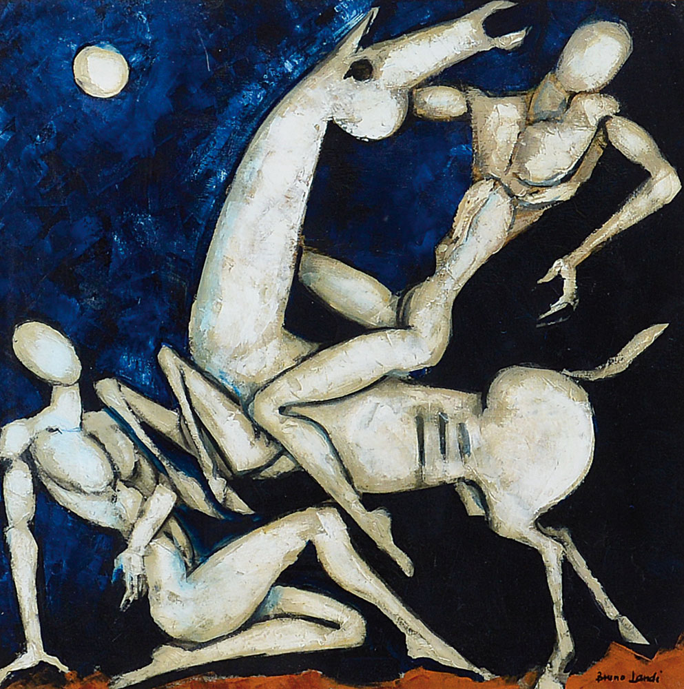 LANDI BRUNO Roma 23/03/1941Scontro notturnoolio su tela cm. 50x50, firma in...