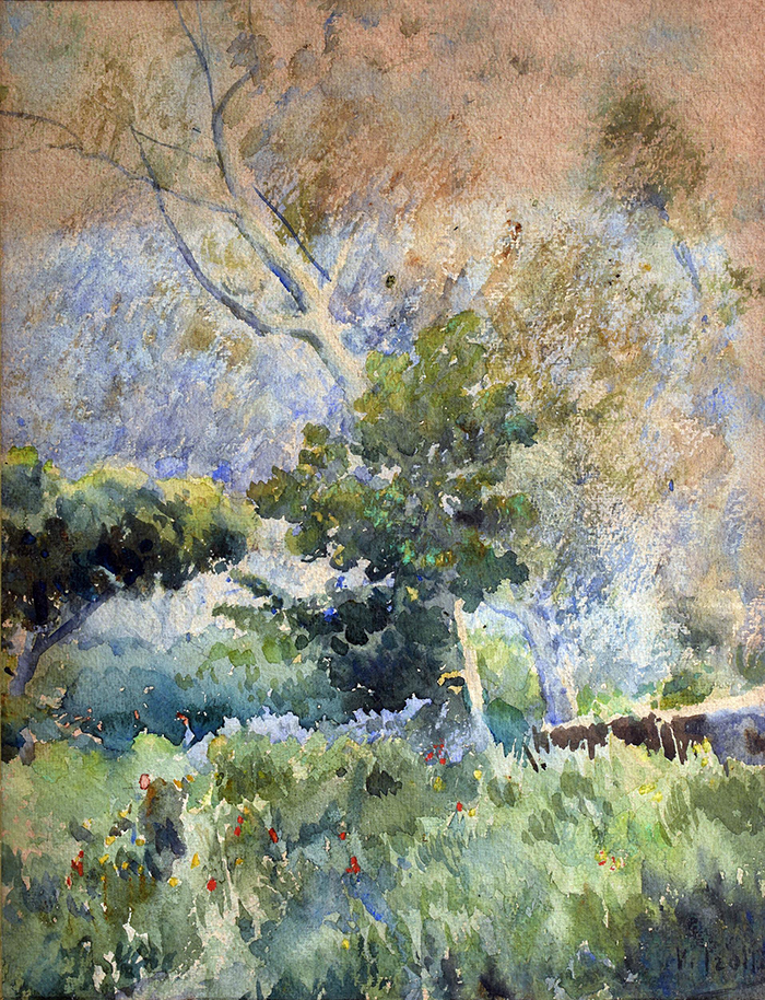 Irolli Vincenzo (Napoli 1860 - 1949) Paesaggio acquerello su carta, cm 33x25 firmato in basso a destra: V. Irolli