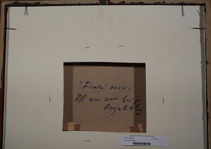 Spinosa Domenico (Napoli 1916 - 2007) Fiori rossi olio su tela, cm 24x30 firmato in basso a sinistra: Spinosa