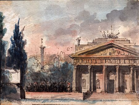 Paesaggio con tempio e obelisco sullo sfondo, Artista neoclassico