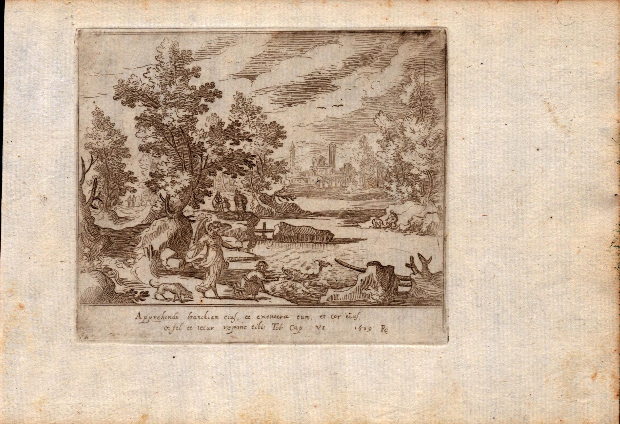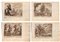 Lotto di quattro incisioni. Acquaforte, 100 x 115 mm ca. (cad. lastra); 135 x 195 mm (cad. foglio). Negro Spina, "Le incisioni di paesaggio di Remigio Cantagallina", in "Studi di Storia dell'Arte in memoria di Mario Rotili", Napoli 1984, figg. 50-53.