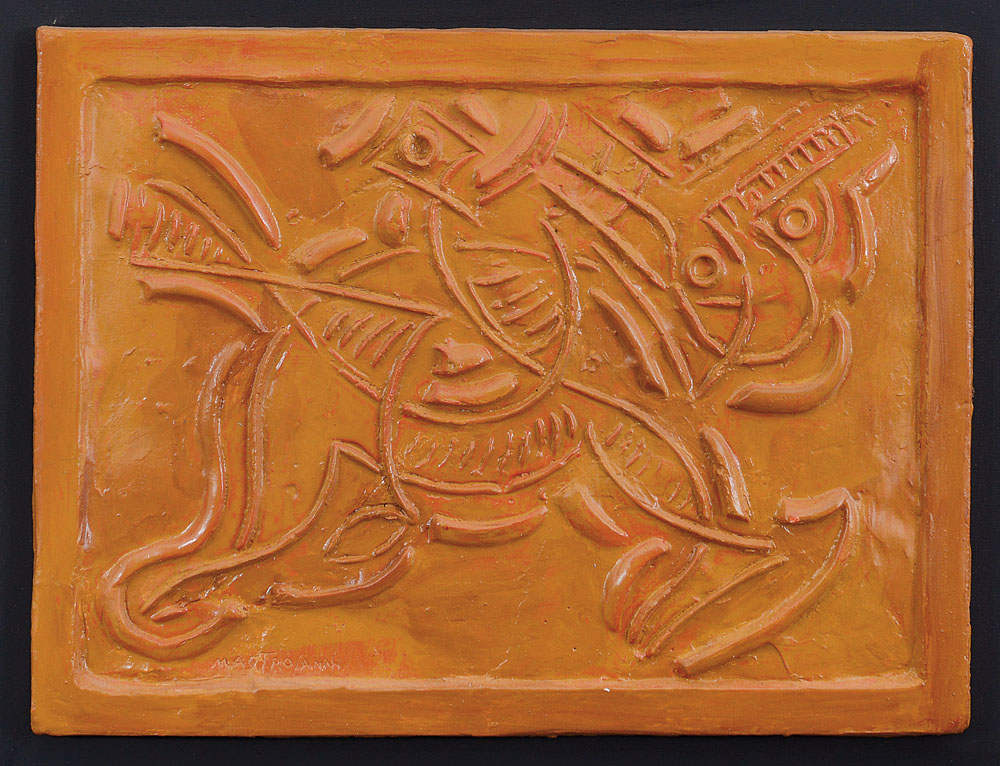 gesso modellato e dipinto cm. 33x43,5; firma in basso a sinistra, certificato d'autenticità a cura della Galleria Verso l'Arte di Cerrina (AT) allegato.