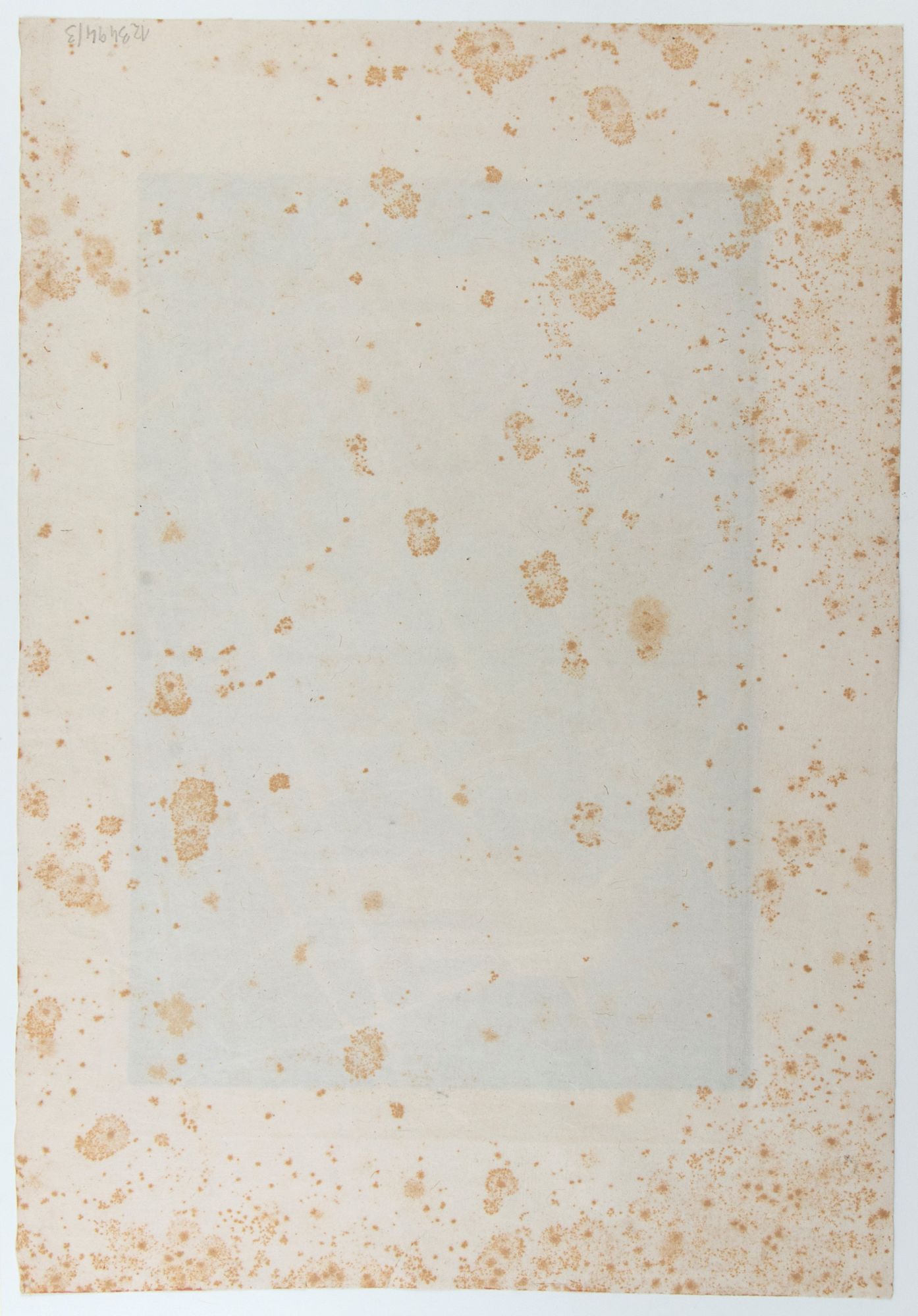 Carta con bruniture sui margini, pieghe, piccoli strappi e fioriture sparse.