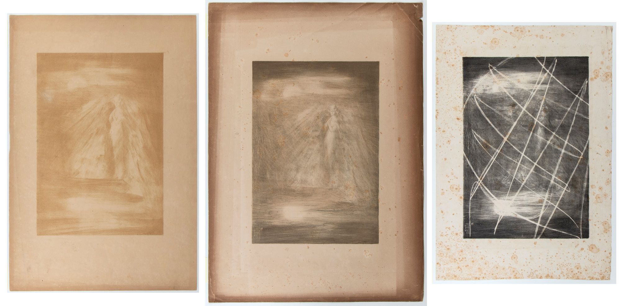 Lotto di tre incisioni: prova di stampa (épreuve d’essai), esemplare finale come pubblicato in "L'Estampe Originale" e un'impressione dalla matrice biffata.