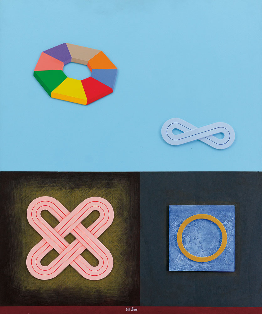 DEL PEZZO LUCIO Napoli 1933Nell'azzurrocollage, colore acrilico su legno cm....