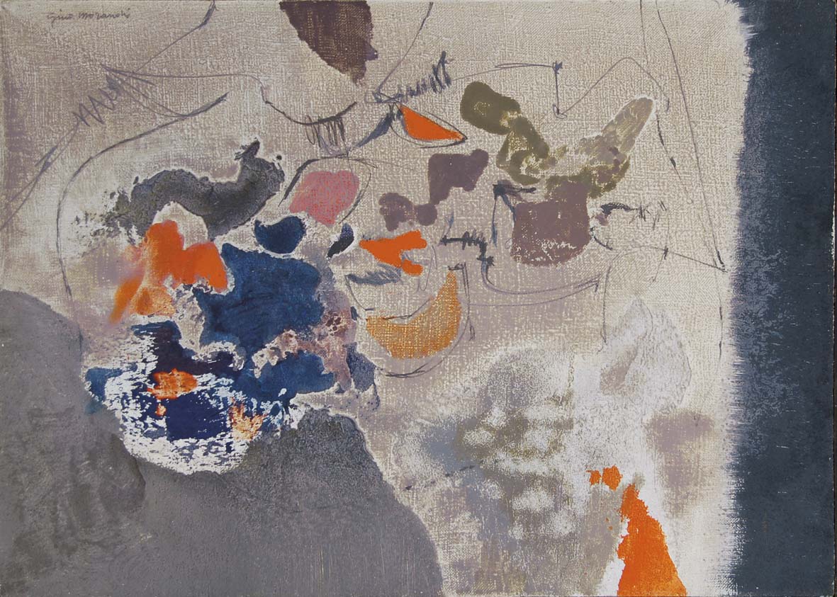 MORANDIS GINO Venezia 1915-1995 Immagine (fine anni '60) olio e tecnica mista su tela 51x71 cm firma in alto a sinistra esposizioni Galleria l'Elefante Treviso - timbro al retro già collezione Gabriella Cardazzo
