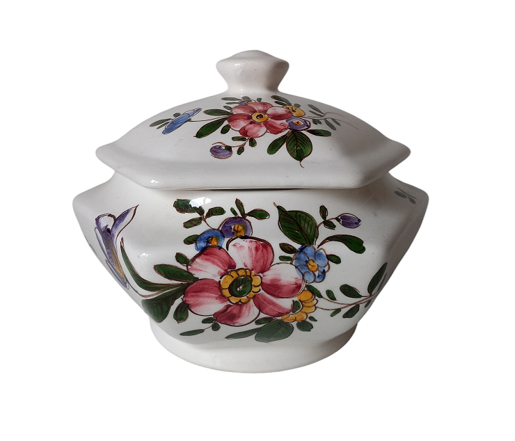 Manifattura Vecchia Lodi - Scatola esagonale in ceramica decorata a motivi floreali h.cm.14
