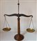 Bilancia della Giustizia vintage in legno, ferro e metallo h.cm.66 con pesi