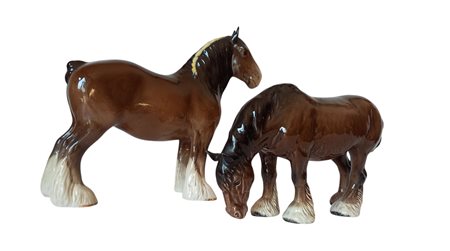 Ceramica Beswick - Due cavalli in ceramica policroma con marchio h.max cm.22