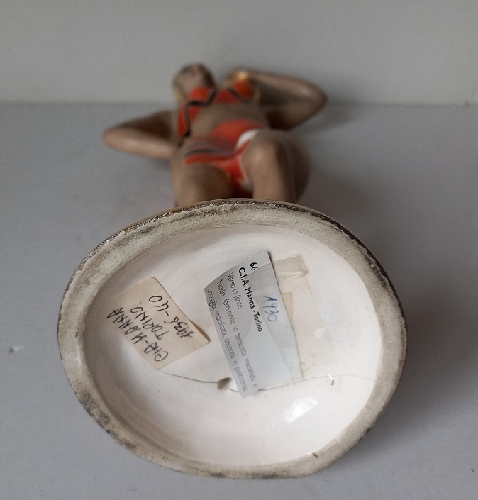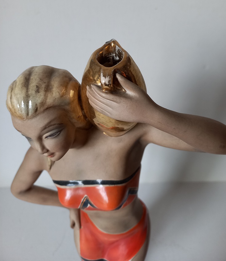 Manifattura C.I.A. Manna (Attribuito) - Verso la Fonte - anni '30 - statua in ceramica policroma h.cm.45 - reca etichetta (difetti)