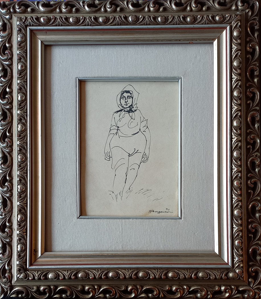 Aldo Borgonzoni (1913-2004) - Contadina 1952 - china su cartoncino cm.21x15 - firmato e datato in basso a destra - in cornice