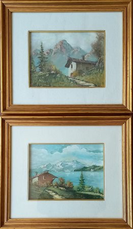 Paesaggio montano e Paesaggio lacustre - Due oli su faesite cm.17x22 in cornice firmati in basso
