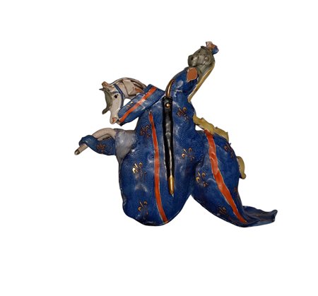 Fosco Martini (1905-1977) - Cavaliere con drappo blu - ceramica policroma...