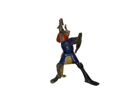 Fosco Martini (1905-1977) - Armigero con tunica blu - ceramica policroma h.cm.15 firmata (difetti e mancanze)