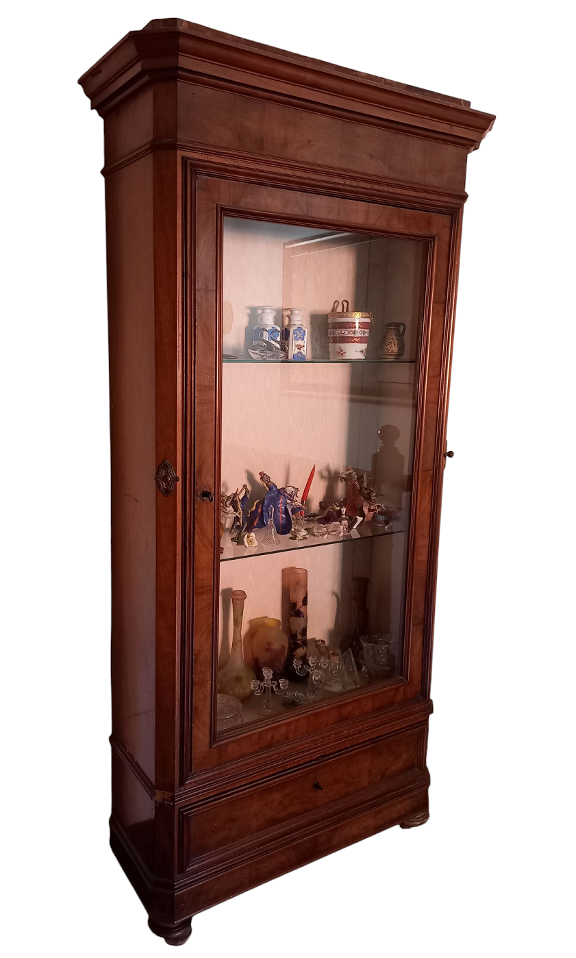 Vetrina a singola anta lastronata in noce XIX-XX secolo cm.100x38 h.cm.197...