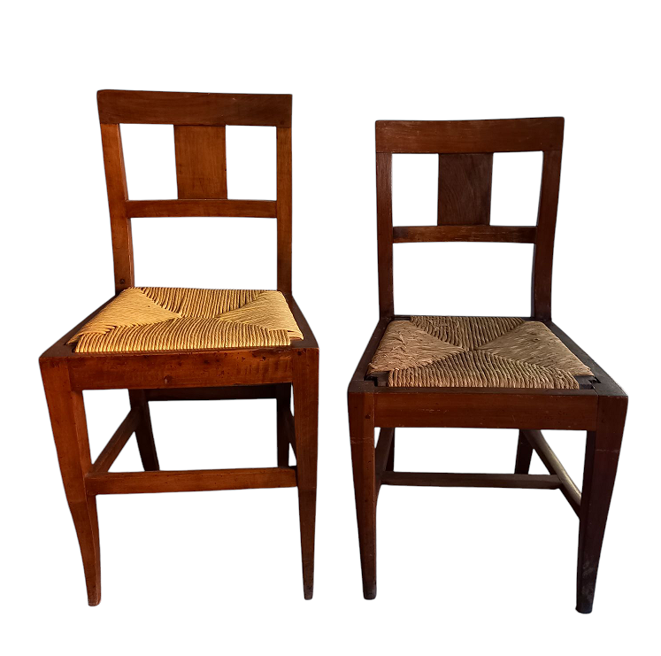 Due sedie in legno con seduta impagliata (lievi difetti)