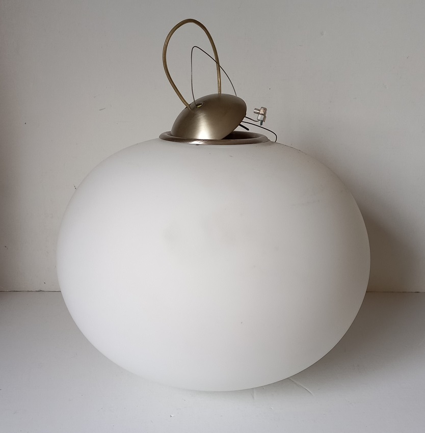 Lampadario a sospensione vintage in vetro lattimo e metallo cm.47x40 circa