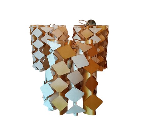 Tre lampadari a sospensione vintage in materiale plastico tessuto e metallo modello ORIGAMI 30/SO marchio VESOISRL (difetti)