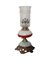Lume a petrolio in vetro lattimo e metallo con decorazioni e applicazioni di...