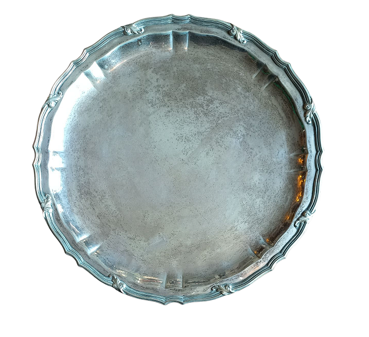 Alzata in argento sbalzato titolo 800 diametro cm.29 h.cm.8 peso gr.769