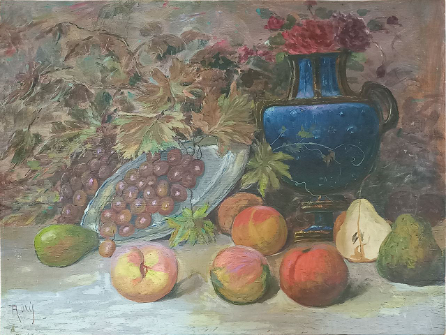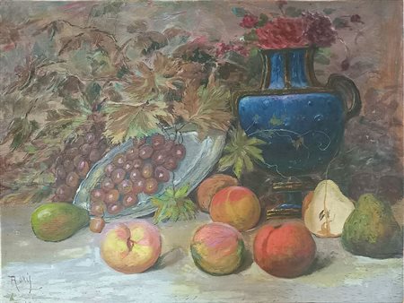 Composizione con frutta e vaso - Olio su tavola cm.50x65 firmato in basso a sinistra senza cornice
