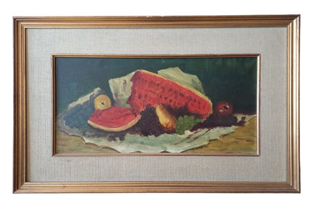 Composizione con frutta - Olio su tela cm.30x60 non firmato in cornice