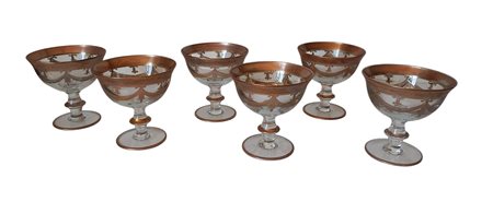 Sei coppe in vetro decorate con bordi e festoni dorati h.cm.12