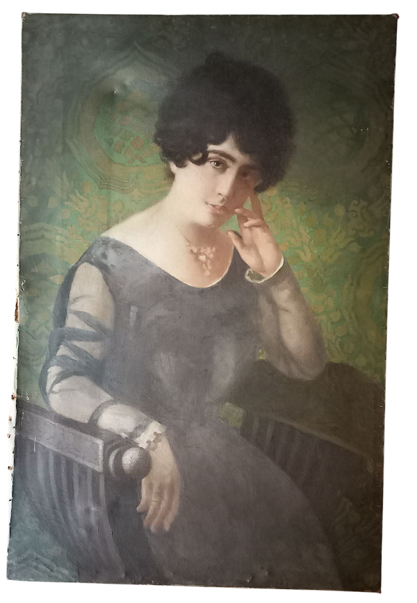 Ritratto femminile - Olio su tela cm.97x63 - inizi XX secolo senza cornice (difetti)