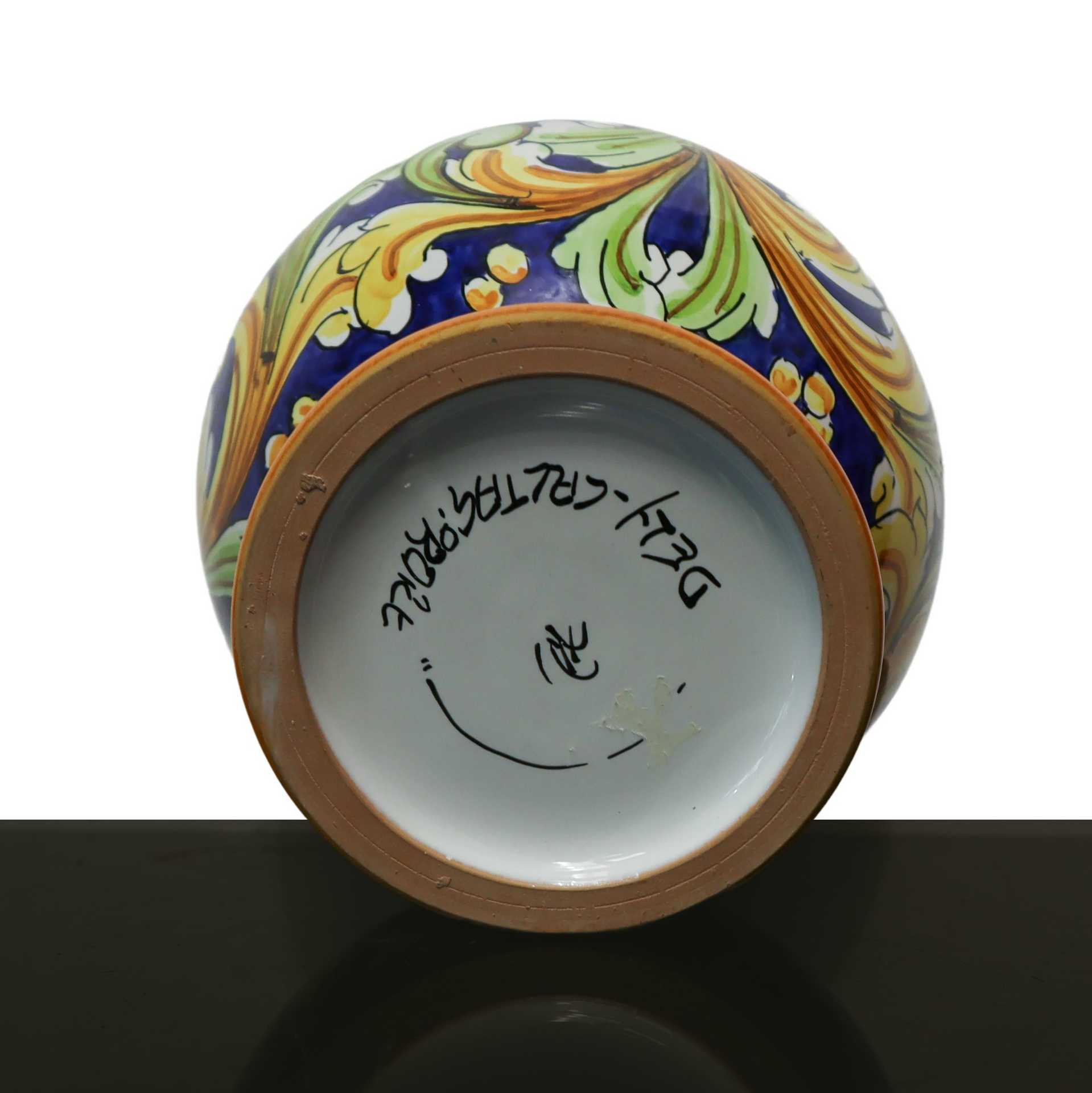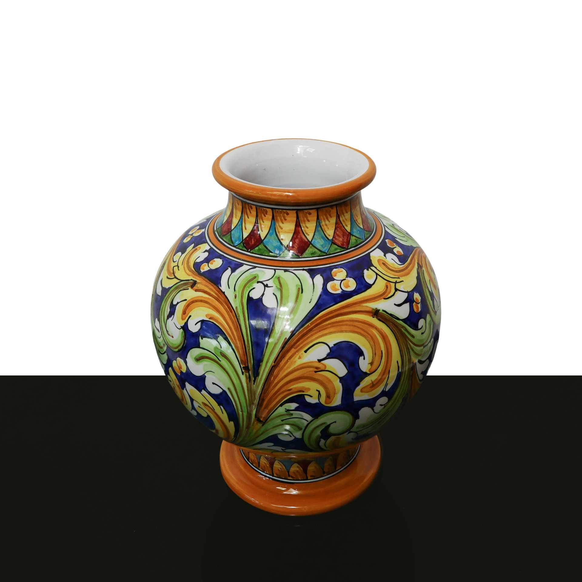 Vaso in maiolica di Caltagirone policroma e decorata a foglie
