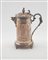 corpo cilindrico scanalato, decorato con elementi verticali e fasce a motivo vegetale, presa del coperchio a fiore.