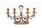 a quattro fiamme, bracci a volute floreali, base con bordo cesellato, corpo sbalzato con decori floreali e cigni.