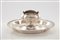la base sagomata, bordo nervato, al centro si erge la coppa a foggia di fiore baccellato.