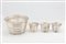 composto grande coppa con piedini a sfera (h cm 17,00 x d cm 27,00), tre coppe più piccole (h cm 8,50 x d cm 12,50), con interno in vetro, (lievi difetti).