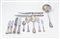 12 cucchiai, 24 forchette, 6 cucchiaini, 12 forchettine, 4 serviti, 22 coltelli , 10 coltelli piccoli.