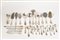 19 forchette grandi, 10 cucchiai grandi, 11 forchette pesce, 12 coltelli pesce, 11 forchette frutta, 8 cucchiai dessert, 3 cucchiaini tè, 10 palette gelato, 6 cucchiaini caffè, 12 forchette da dolce, 6 piccole posate di servizio, 15 serviti, 21 coltelli grandi, 13 coltelli frutta.