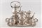 composto da un grande samovar con stoppiniera, teiera, caffettiera, lattiera e zuccheriera finemente sbalzati e incisi a decori floreali, presa del coperchio a pigna, il vassoio biansato inciso e sbalzato (l cm 57,00).