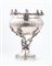 fuso, sbalzato e cesellato, la base finemente incisa a volute floreali da cui nasce un albero nodoso con due putti che giocano, a sorreggere una coppa striata sormontata da viticci e putti musicanti.
