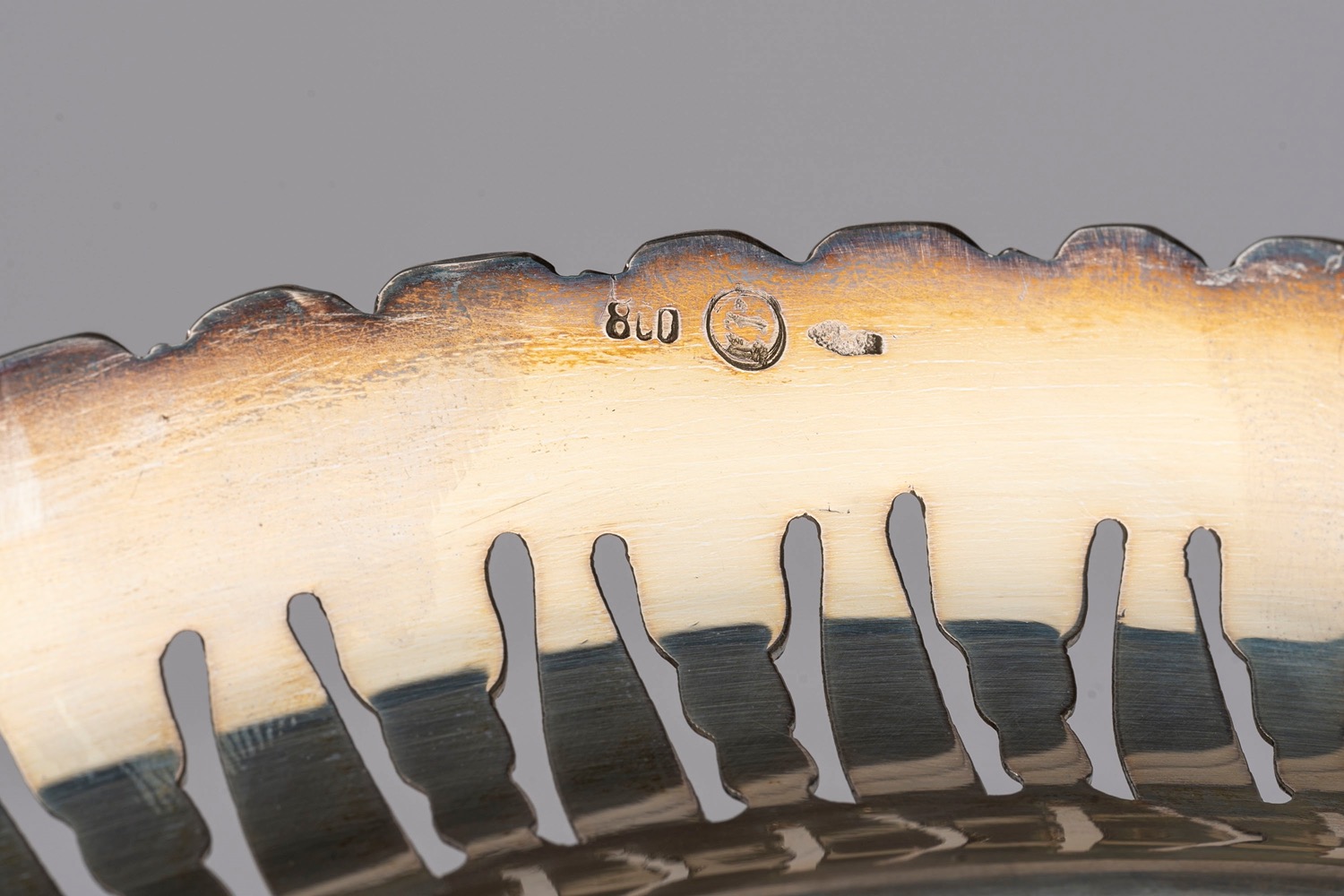 decorato a motivi fogliacei, con bordo traforato e a rilievo.