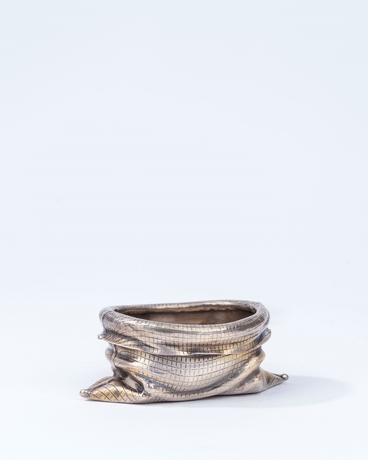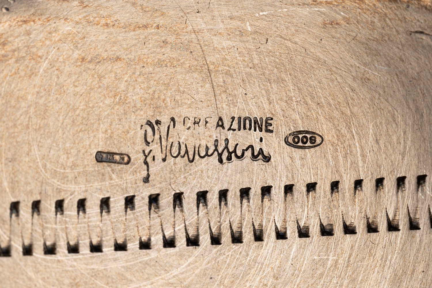 finemente cesellato a forma di sacco, firmato Vavassori.