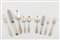 10 forchettine, 10 coltelli medi, 9 coltelli piccoli, 3 cucchiaini e 3 forchette dolce, punzone 800;