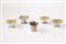 le saliere sbalzate a motivi floreali, tre con interno in vermeil, il cestino inciso.