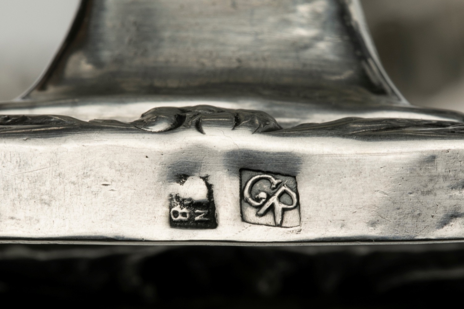 di forma quadrata, sbalzate a motivi floreali.